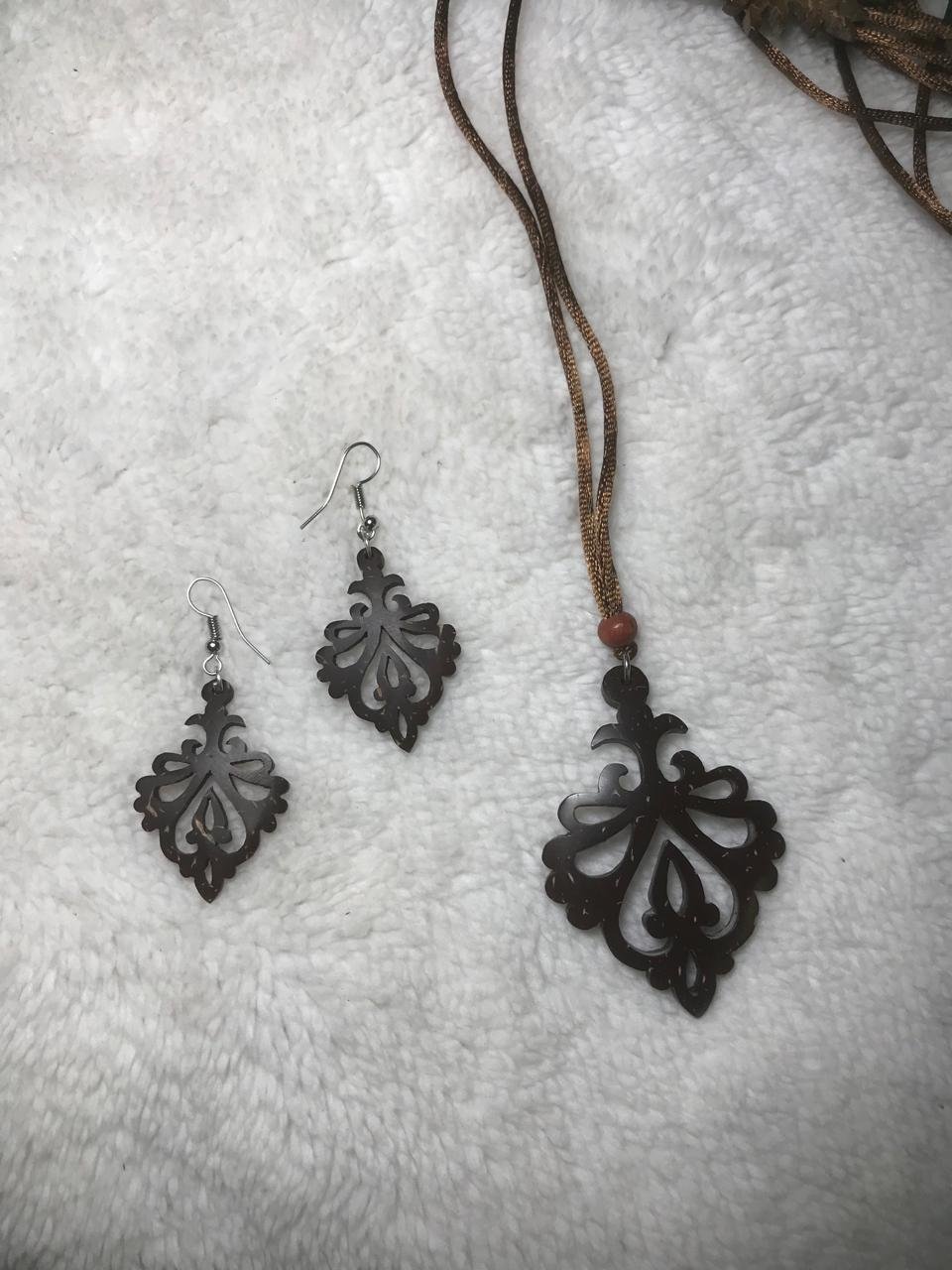 007 Coconut Cells Chain With Earring ( Hand Made)