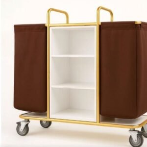 Laundry & Housekeeping Trolley With Dual Bags Central Shelving I Heavy -Duty Hotel Linen -JTC